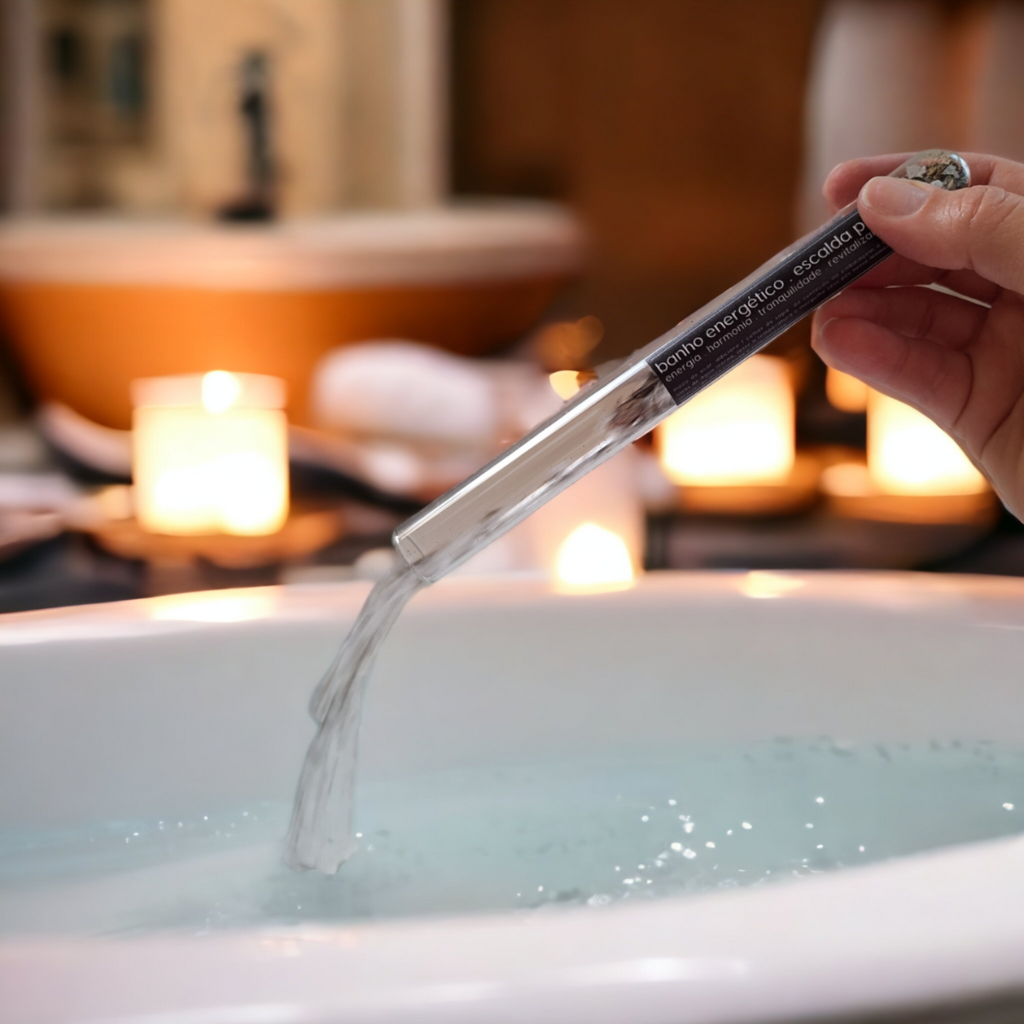 (como banho energético) - adicione à água da sua hidro ou ofurô 60g de produto antes da imersão. Também pode ser preparado em um recipiente para enxaguar o corpo durante o banho de chuveiro.