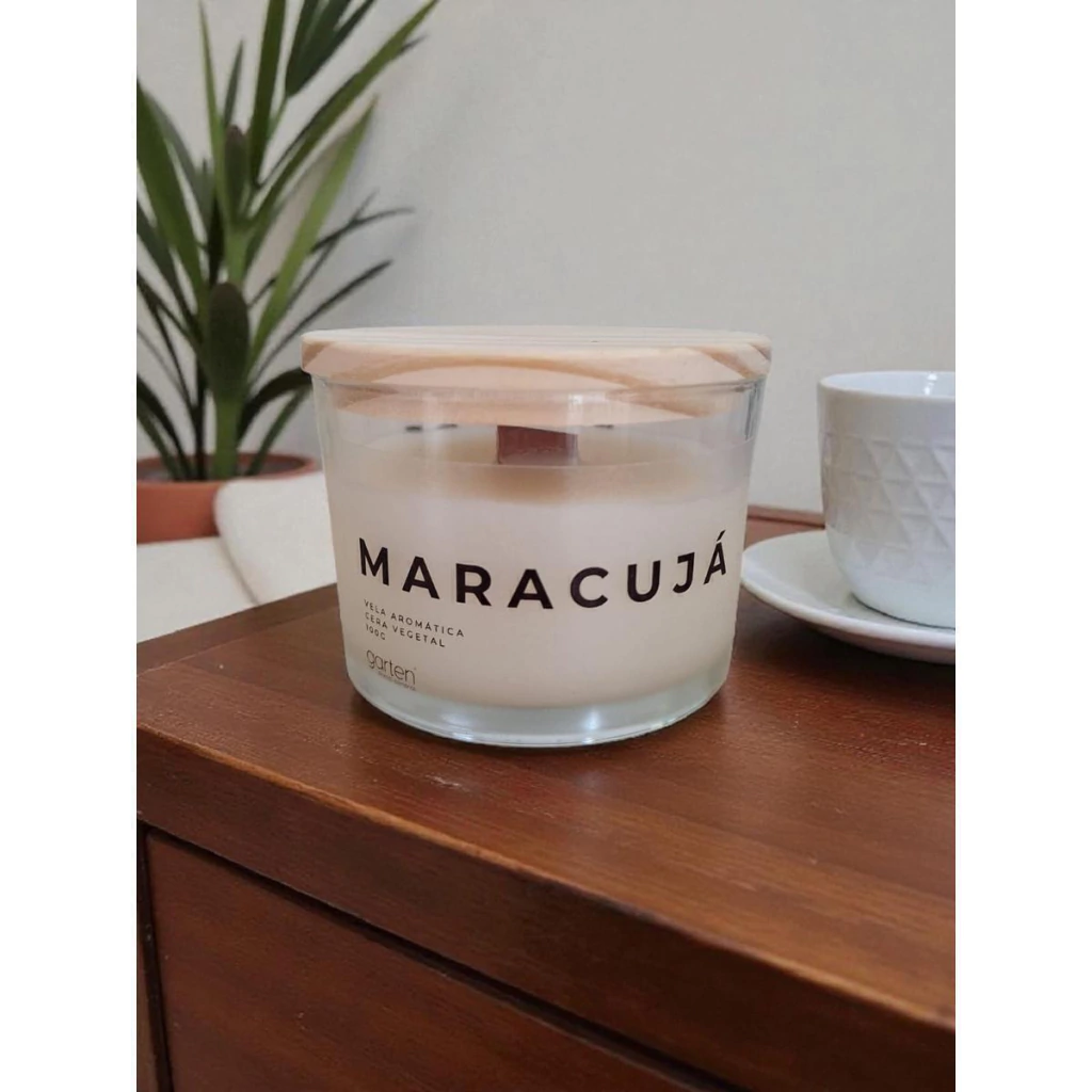 Nossa vela de 100g é produzida em pote de vidro altamente resistente e finalizada com uma linda tampa de madeira, que além de deixar a embalagem super charmosa, pode ser utilizada para abafar a vela na hora de apagá-la. Nossas velas são produzidas com cera 100% vegetal o que garante a queima limpa e segura. Nossas essências são de altíssima qualidade, proporcionando um aroma marcante e duradouro.